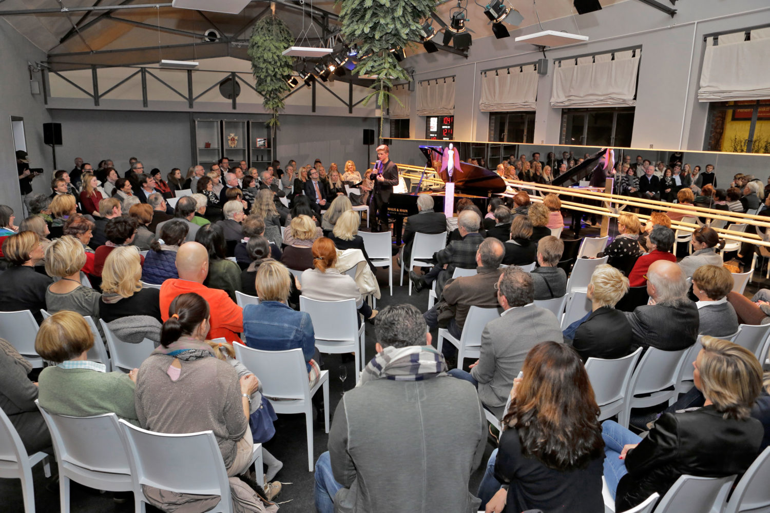 25.11.2017: Über 140 geladene Gäste genossen Greve’s gelungenen Adventauftakt in der Alten Jacquardweberei. Der 22-jährige Pianist Enya Haas verzauberte mit eigenen Kompositionen und wurde mit minutenlangem stehendem Beifall geehrt. Eingebettet in das berührende Konzert präsentierten Models Outfitideen zum beginnenden Winter. Shooting-Star Sebastian Wehrle stellte seine Fotografien „Schwarzwaldmaidli“ aus, die Anfang 2017 von Krefeld aus direkt nach Brooklyn weiterreisen. Holzbildhauer Simon Stiegeler, prämierter Expo-Partner bei der Weltausstellung in Shanghai 2010, traf mit seinen Engeln den Nerv des Publikums. Schließlich überraschte Dominik Grzeschik mit einer Dessert-Performance im Glashaus Gäste und Künstler.